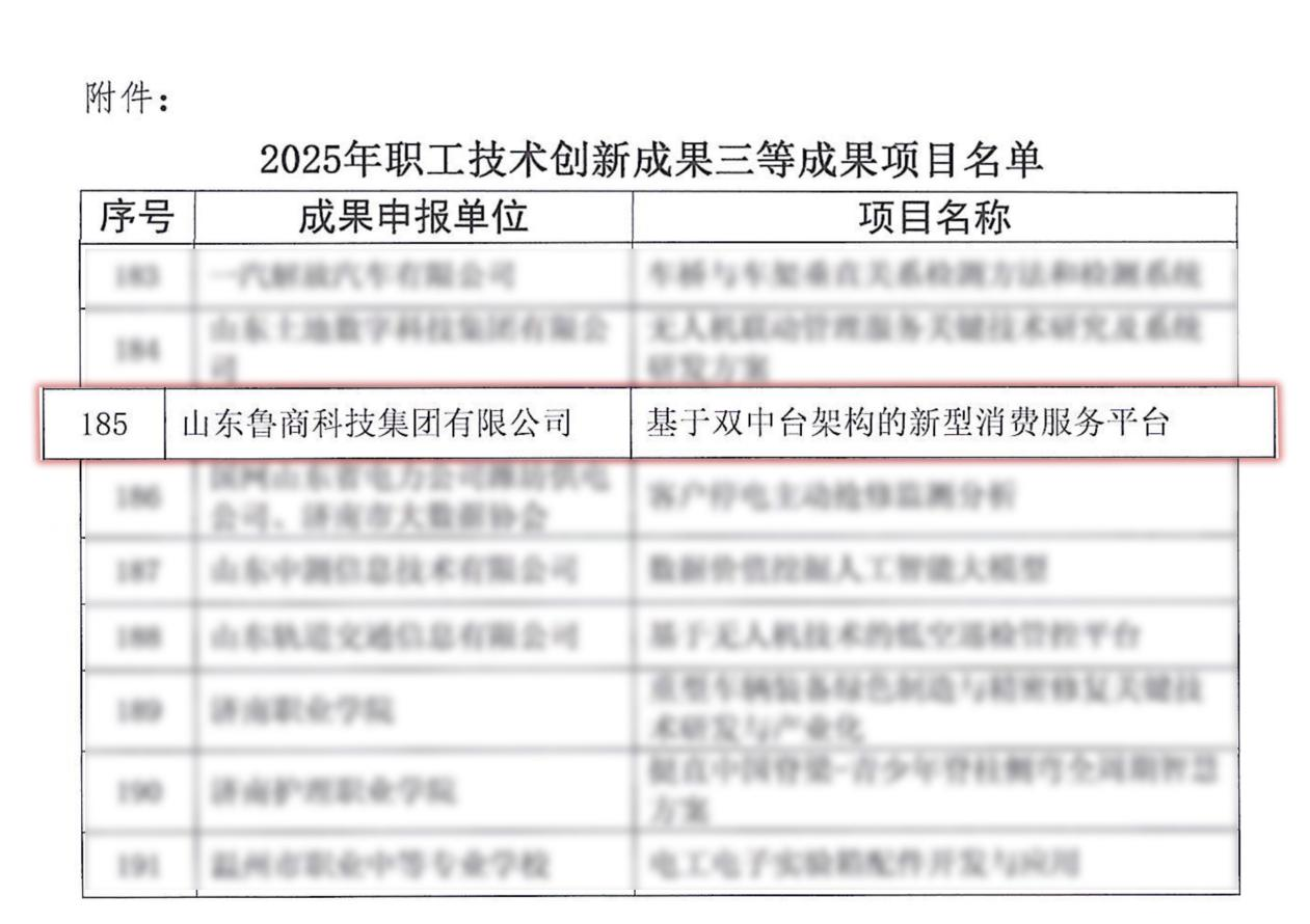 近日,中国职工技术协会公布2025年职工技术创新成果评选结果,鲁商科技技术成果成功获评三等奖。