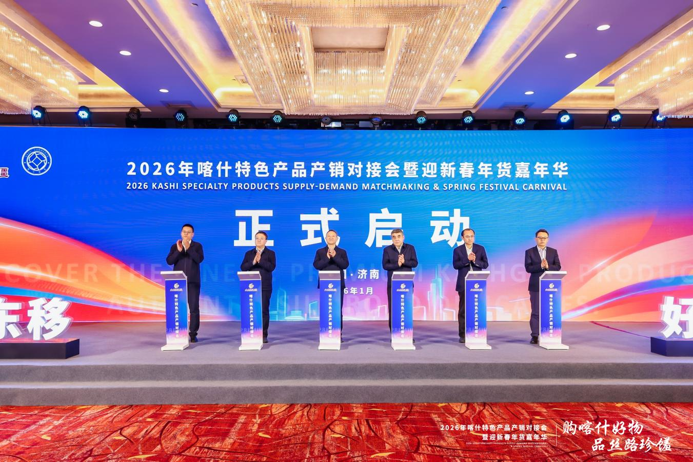 1月27日,2026喀什特色产品产销对接会暨迎新春年货嘉年华在济南正式启动。活动由山东省发展改革委、山东省国资委、山东省对口支援新疆工作指挥部指导,喀什地区商务局、中国物流与采购联合会主办,鲁商集团承办。