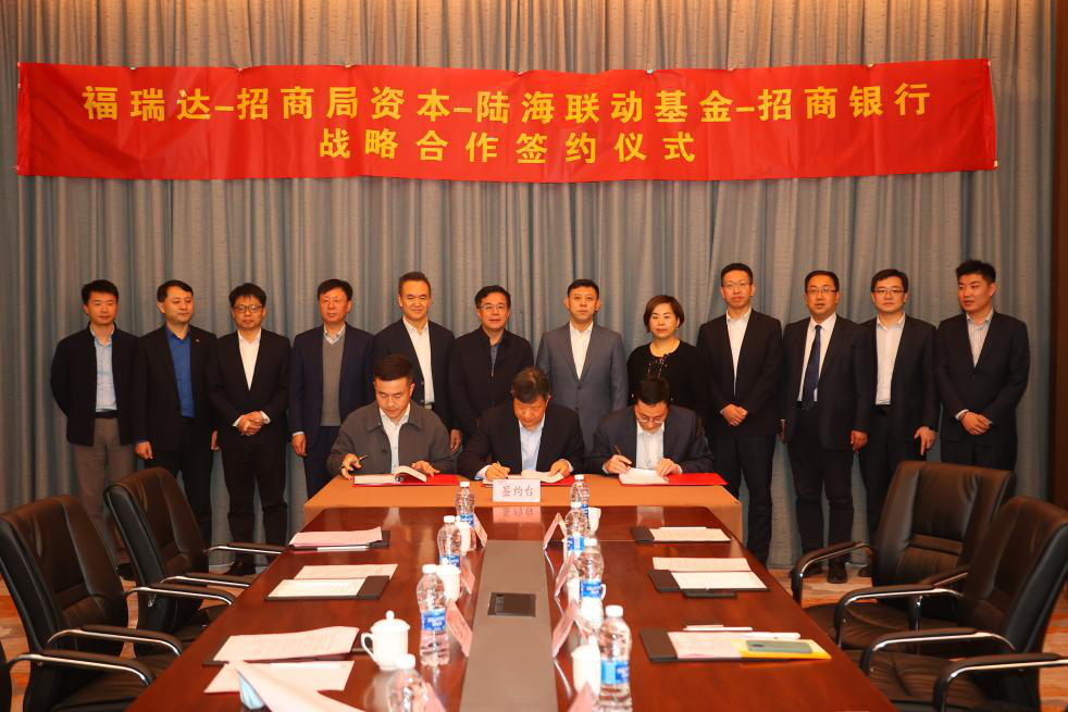 12月14日,福瑞达与招商银行济南分行、招商局资本管理有限公司(以下简称招商局资本)、山东陆海联动投资基金(以下简称陆海联动基金)举行战略合作签约仪式。鲁商集团党委副书记、总经理郭训成,党委常委、董事、组织人力资源部部长李林出席仪式。