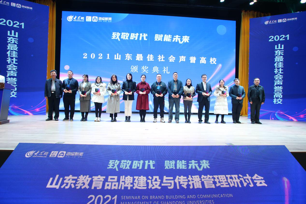 12月24日,由山东省互联网传媒集团主办、泰山科技学院承办的2021山东教育品牌建设与传播管理研讨会召开。山东商院入围“2021山东最佳社会声誉高校”“2021山东最具影响力教育政务融媒体”榜单。
