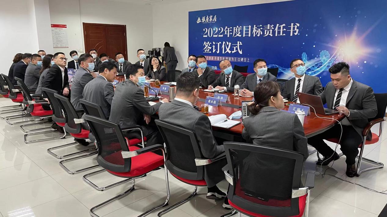 2月21日,山东银座家居有限公司召开2022年目标责任大会,学习传达集团2022年度工作会议精神,各经营单位签署目标责任书,研究部署全年工作任务。