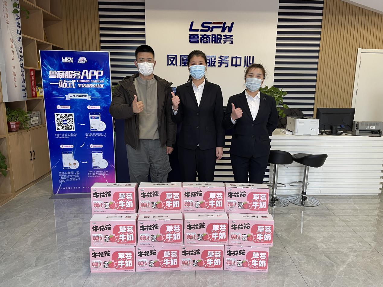 在鲁商服务青岛城市公司,很多员工放弃休假返岗待命,服务全员核酸检测工作。在青岛蓝岸国际,员工工作量较大,无法按时吃饭,业主主动送来快餐食品;在济南唐冶凤凰城,业主程先生自掏腰包,为凤凰城中心员工送来20箱牛奶;银座数码广场,项目服务中心员工加强防疫工作,对写字间、商铺、车库等出入口严格执行测温、查询行程码、核对出入人员信息等工作,对重点区域进行高频次全面消杀,将一切不确定的可能性阻隔在大厦之外,山东博军集团业主李先生为银座数码广场捐赠120桶酒精,助力疫情防线工作。