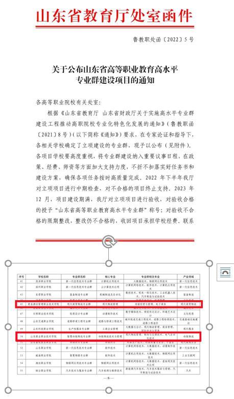 近日,省教育厅下发《关于公布山东省高等职业教育高水平专业群建设项目的通知》,山东商院智慧冷链物流专业群、青岛酒店学院现代商贸物流专业群获批省高等职业教育水平专业群建设项目。