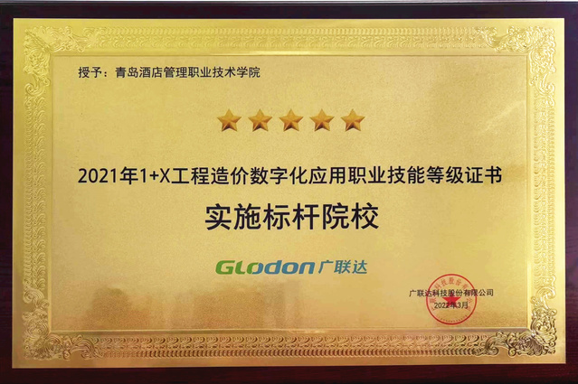 近日,全国2021年度“1+X”工程造价数字化应用职业技能等级证书实施标杆院校颁奖会线上召开,青岛酒店学院被评为2021年证书实施五星级标杆院校,教师葛玉洁、于巾茹分别荣获“优秀培训讲师”“优秀考务组织”称号。