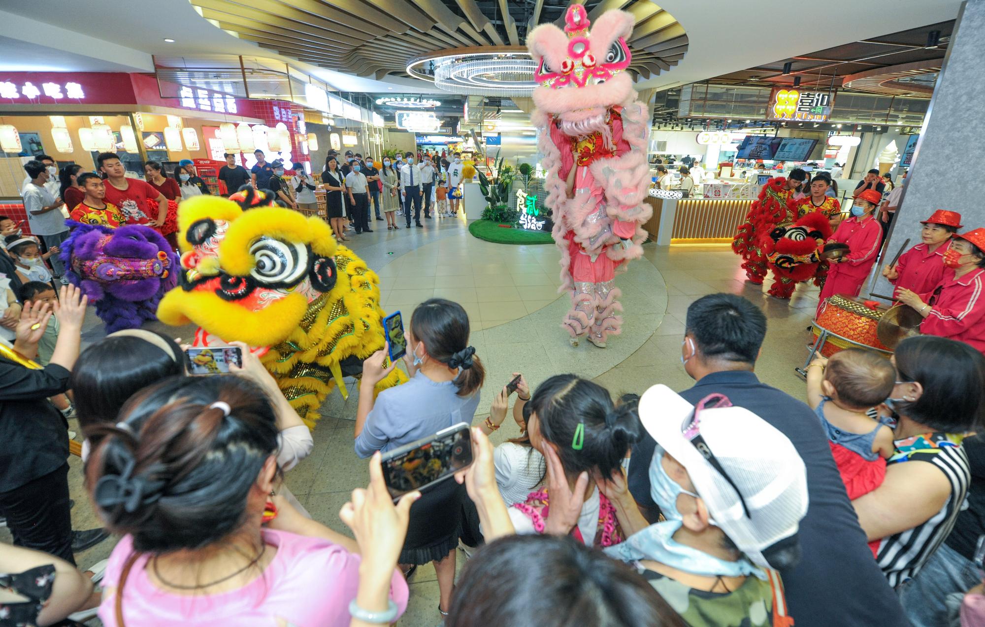 活动现场,伴着铿锵鼓乐,精彩的醒狮表演在腾挪漫步、跳跃嬉戏中,将生龙活虎、蒸蒸日上的精气神表现的淋漓尽致,引来众多顾客的驻足和喝彩。