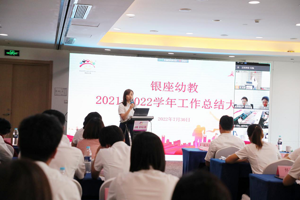7月30日,银座幼教通过线上线下相结合的方式召开2021-2022学年工作总结会议。银座幼教党总支书记、董事长袁霞,党总支委员、总园长孟凡庸,党总支委员、财务总监黑建霞,党总支委员、副总园长张丽、王希出席会议。