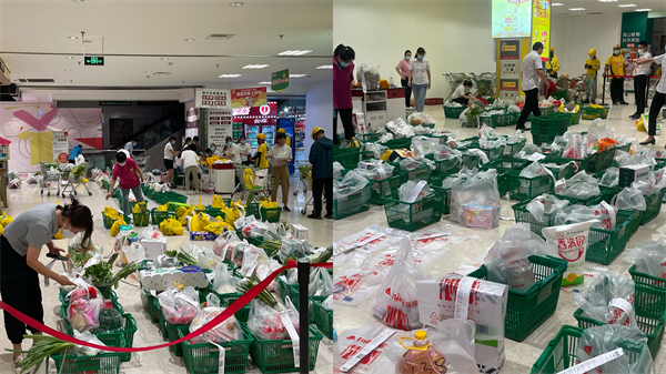 为保证货源、稳定物价,各门店切实扛起国企责任担当,充分发挥区域自采优势,积极拓展货源,优化采购、仓储、配送、提货等各个环节,保障蔬菜水果、肉蛋奶、米面粮油等民生商品供应充足,守护好老百姓的“菜篮子”“肉盘子”“米袋子”。各门店积极组建“社区销售服务群”,不断完善线上履约、接单、拣货、配送等流程,及时将物资送到广大群众手中,确保居家期间物资不断档,安心抗疫。