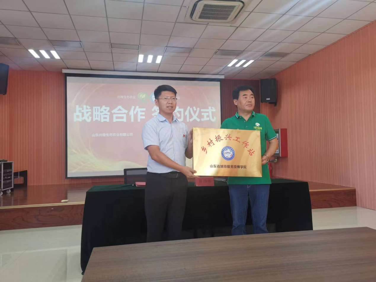 赵长珂与程慕国共同为“山东省城市服务技师学院乡村振兴工作站”“山东省城市服务技师学院中餐学院校企合作实训基地”揭牌。
