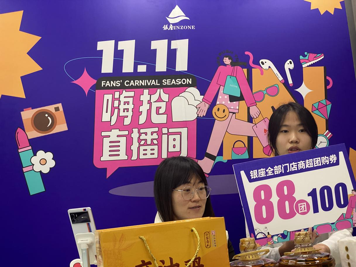 11月10日,省城市学院现代商务系党总支志愿服务队到银座烟台莱山店进行为期两天的优惠券推广宣传直播活动。