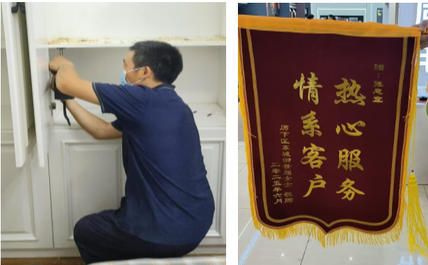 面对感谢,他腼腆回应“举手之劳,不算啥。”几日后,屈女士专程送来“热心服务 情系客户”的锦旗,连声称赞:“张师傅不仅洗碗机装得专业,帮我改的衣柜也特别顺手,这样的贴心服务必须点赞!”
