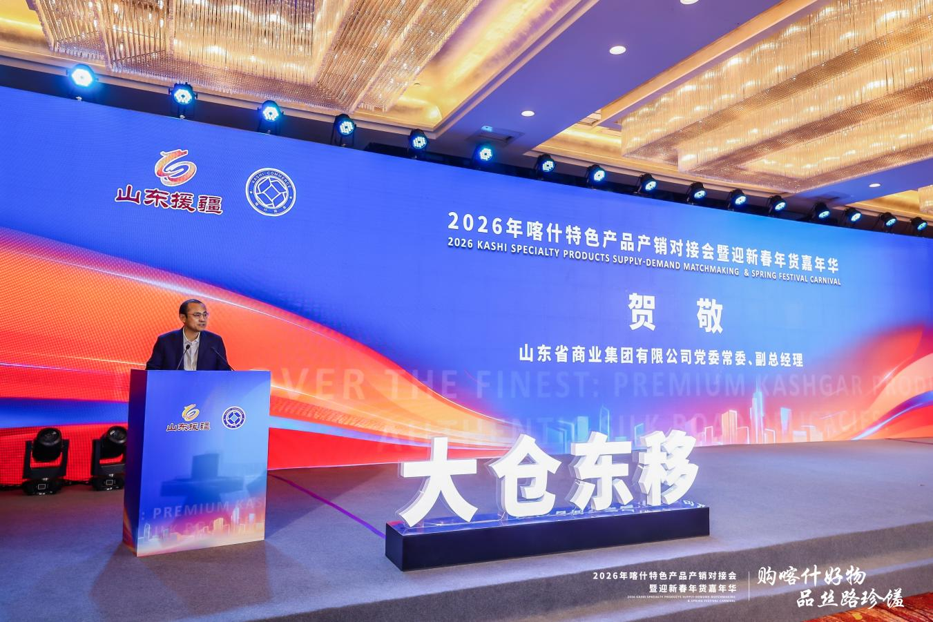 1月27日,2026喀什特色产品产销对接会暨迎新春年货嘉年华在济南正式启动。活动由山东省发展改革委、山东省国资委、山东省对口支援新疆工作指挥部指导,喀什地区商务局、中国物流与采购联合会主办,鲁商集团承办。