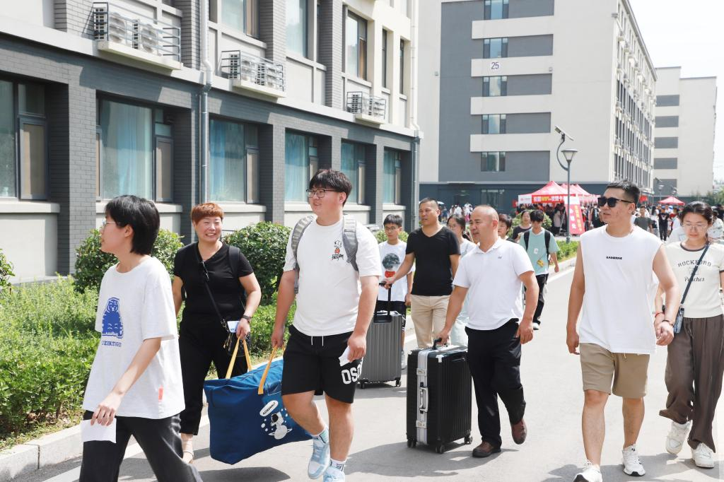 迎新现场骄阳似火,“热情、高效、有序、平安”贯穿迎新工作始终。学校为新生和家长提供免费冷热饮、休息区、临时医疗点等便利服务;在淄博市客运场站安排免费接站车辆,并在校内设摆渡车为新生提供方便;允许私家车进入校内,并由安保人员和老师担任指挥员确保交通安排;学生餐厅提前供餐、延长供餐时间,确保学生能吃上饭、吃饱饭、吃好饭;学生志愿者提前将新生被褥运至各个宿舍,并按床号摆放;学生资助中心开设“绿色通道”,确保家庭经济困难学生顺利入学,并为其发放“爱心礼包”;学校与驻地派出所、网格社区携手,进行防诈骗宣传和线上直播讲座,为新生上了安全第一课。
