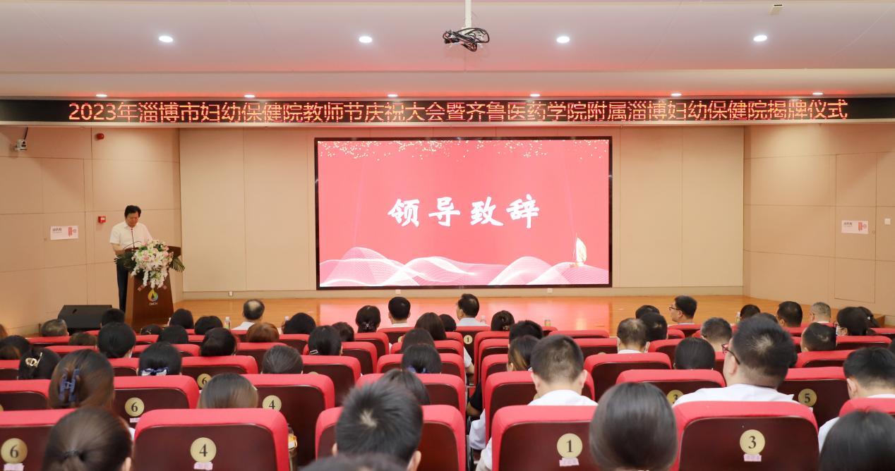 9月7日,齐鲁医药学院附属淄博妇幼保健院揭牌仪式暨医院教师节庆祝大会在淄博市妇幼保健院举行。齐鲁医药学院党委书记吕传毅,党委委员、副校长杜敏,淄博市卫健委党组书记、主任程勤,淄博市妇幼保健院党委书记张立新出席揭牌仪式,淄博市妇幼保健院党委副书记、院长叶大勇主持。