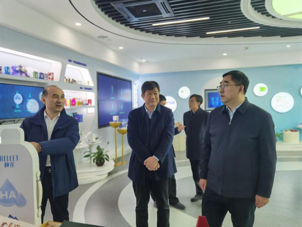 座谈会前,魏斌一行参观了福瑞达展厅和化妆品创新实验室,了解企业发展历程、产业现状、科研进展、转型升级等情况。