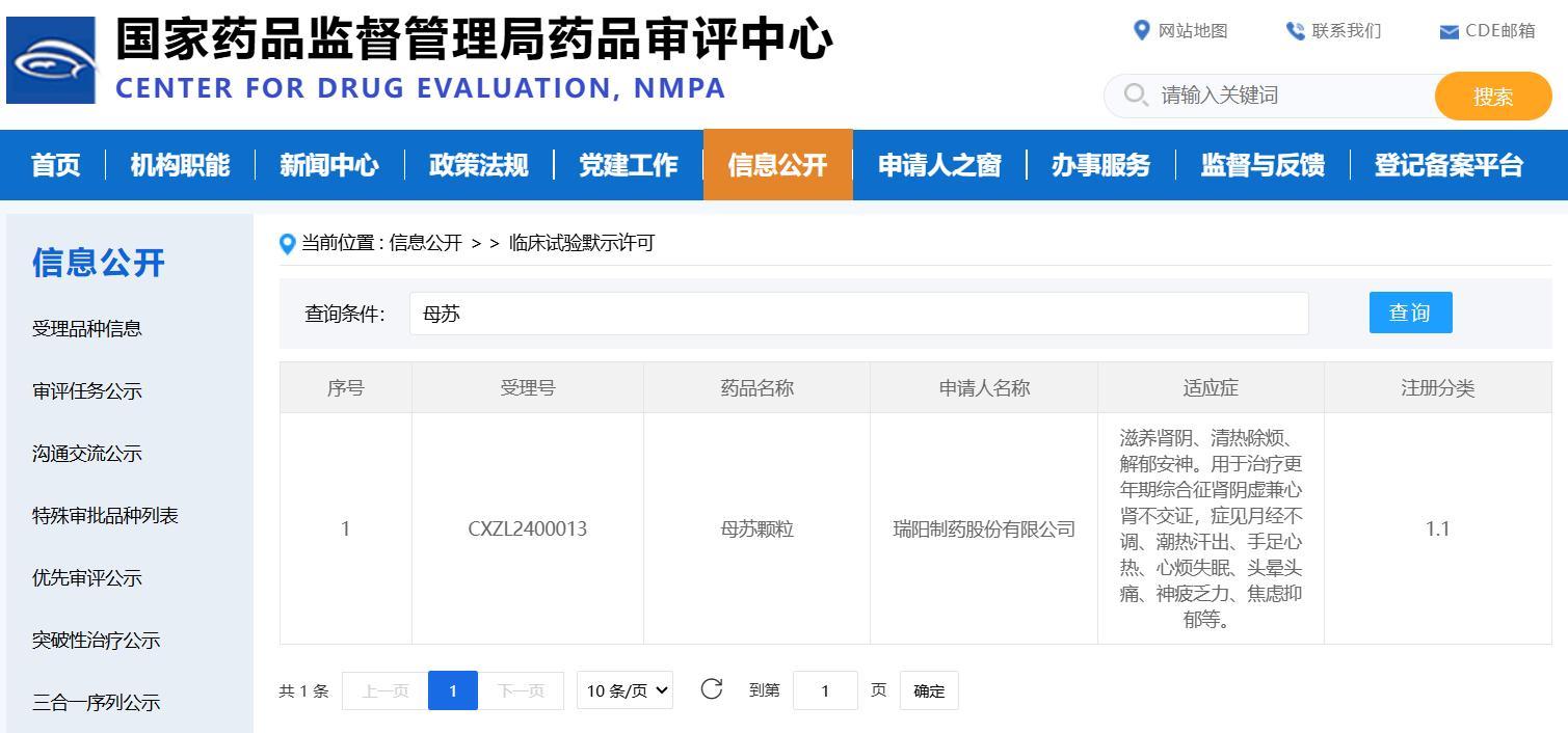 近日,在省药科院的协助下,国内某药企开发的母苏颗粒获批临床试验,该产品注册分类为中药新药1.1类。
