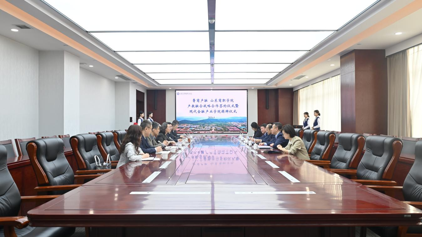 4月3日,鲁商产融与山东商职学院产教融合战略合作签约暨现代金融产业学院揭牌仪式顺利举行,并同步召开产业学院第一届理事会会议。鲁商集团党委常委、副总经理、首席合规官贺敬,山东商职学院党委书记邓迎迎为学院揭牌,山东商职学院党委副书记、院长张宗国参加活动。